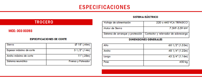 • Velocidad de sierra cinta 34 MTS/SEG.